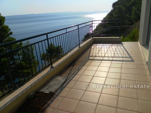 Opis: Mieszkanie znajduje się na 1 piętrze. Składa się z dwóch sypialni, dwóch łazienek, salon, kuchnia, jadalnia i dwa duże balkony z wyraźnym widokiem na morze, prywatnej plaży ok. 10m i widokiem wysp Dalmacji Brac i Hvar.