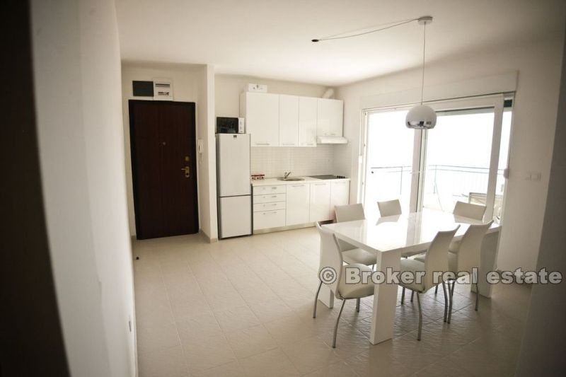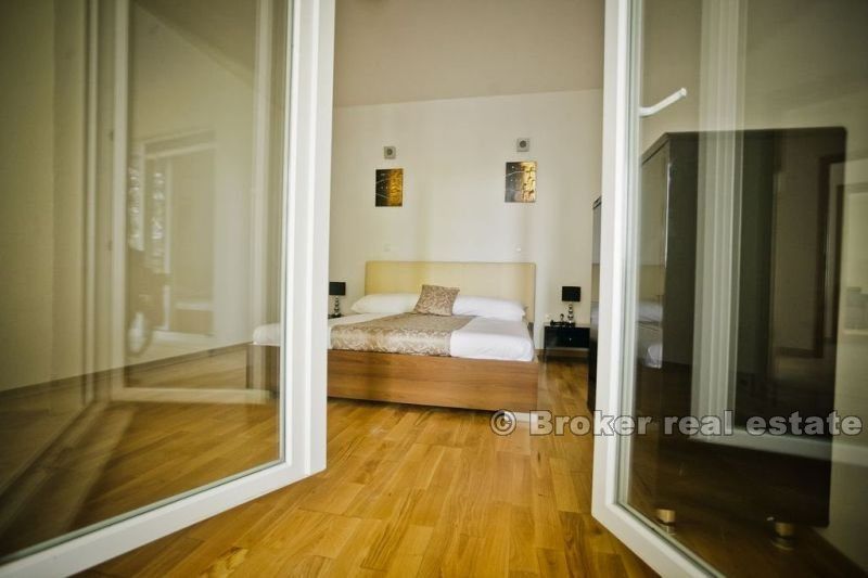 Opis: Mieszkanie znajduje się na 2 piętrze. Składa się z dwóch sypialni, dwóch łazienek, salon, kuchnia, jadalnia i duży balkon z wyraźnym widokiem na morze, prywatnej plaży ok. 10m i widoki z wysp Dalmacji Brac i Hvar.
